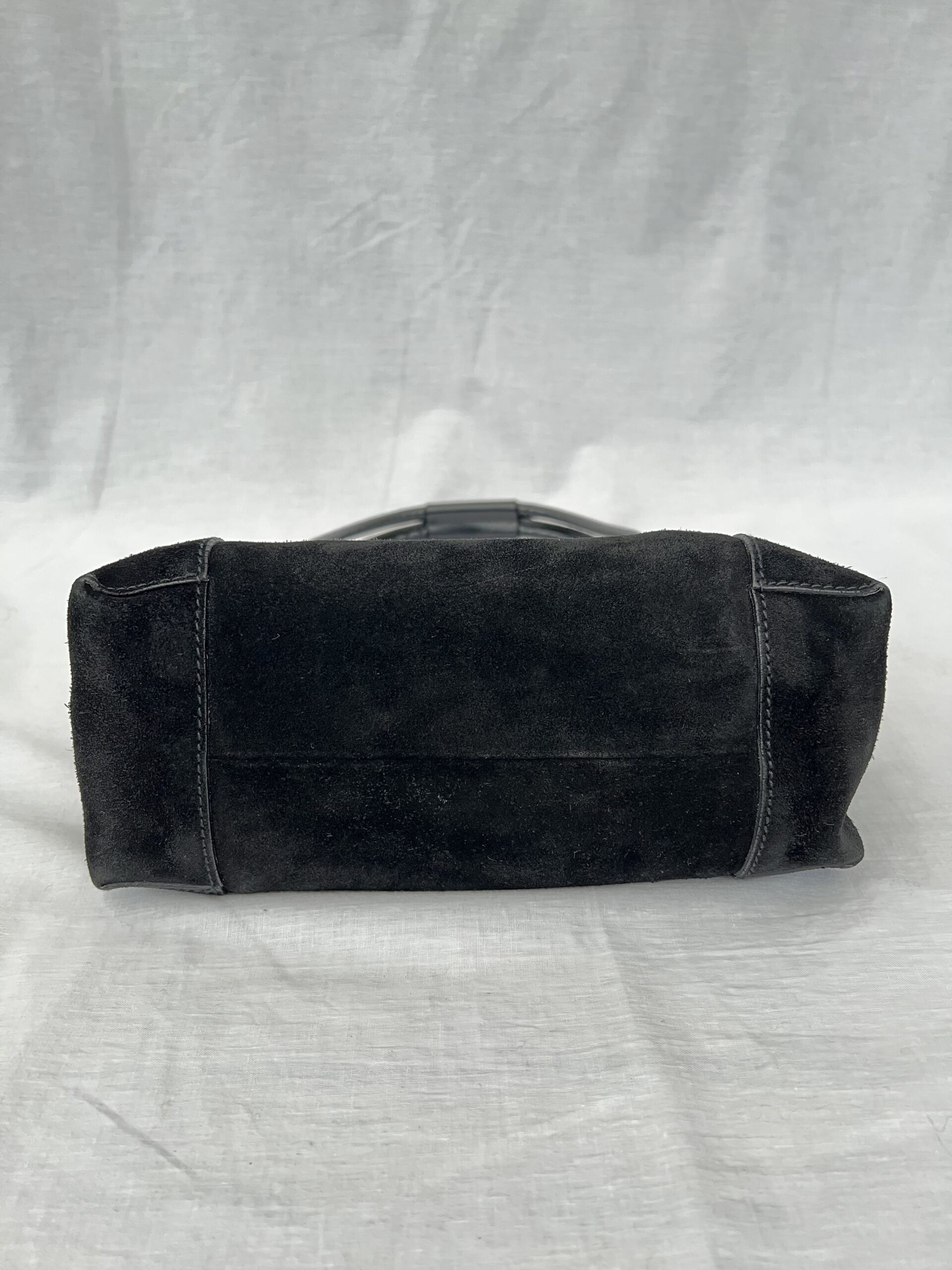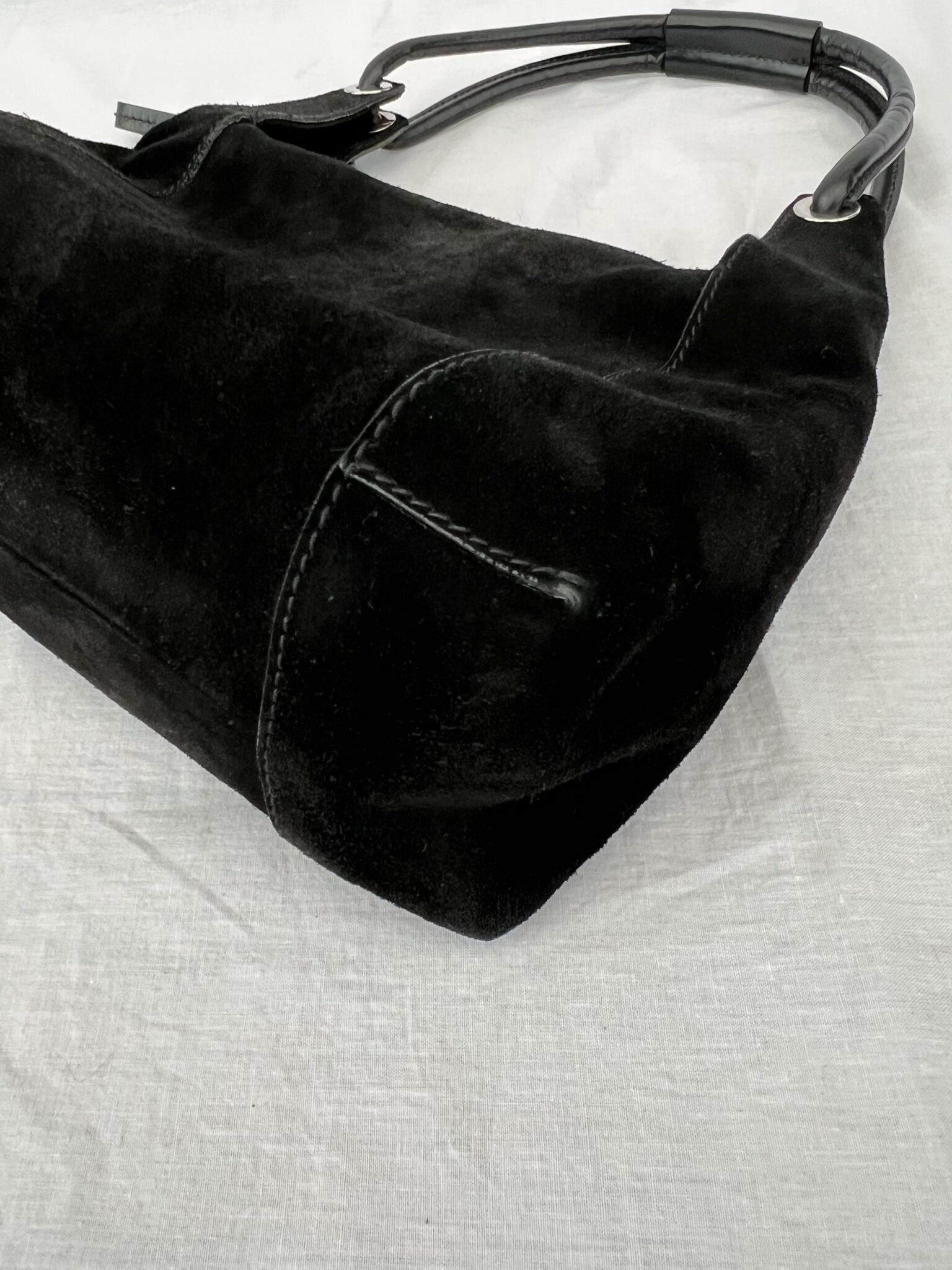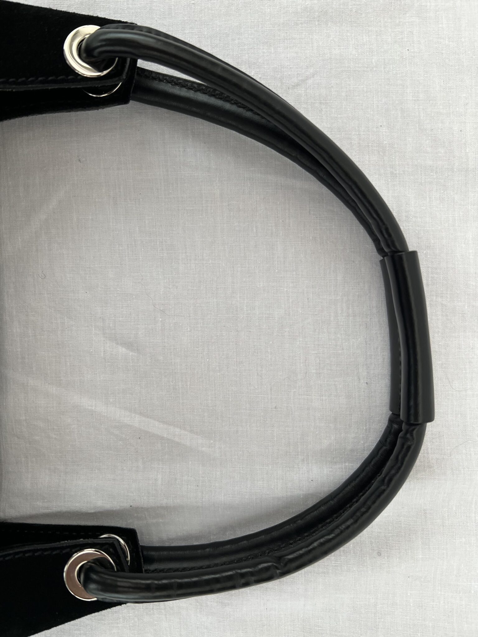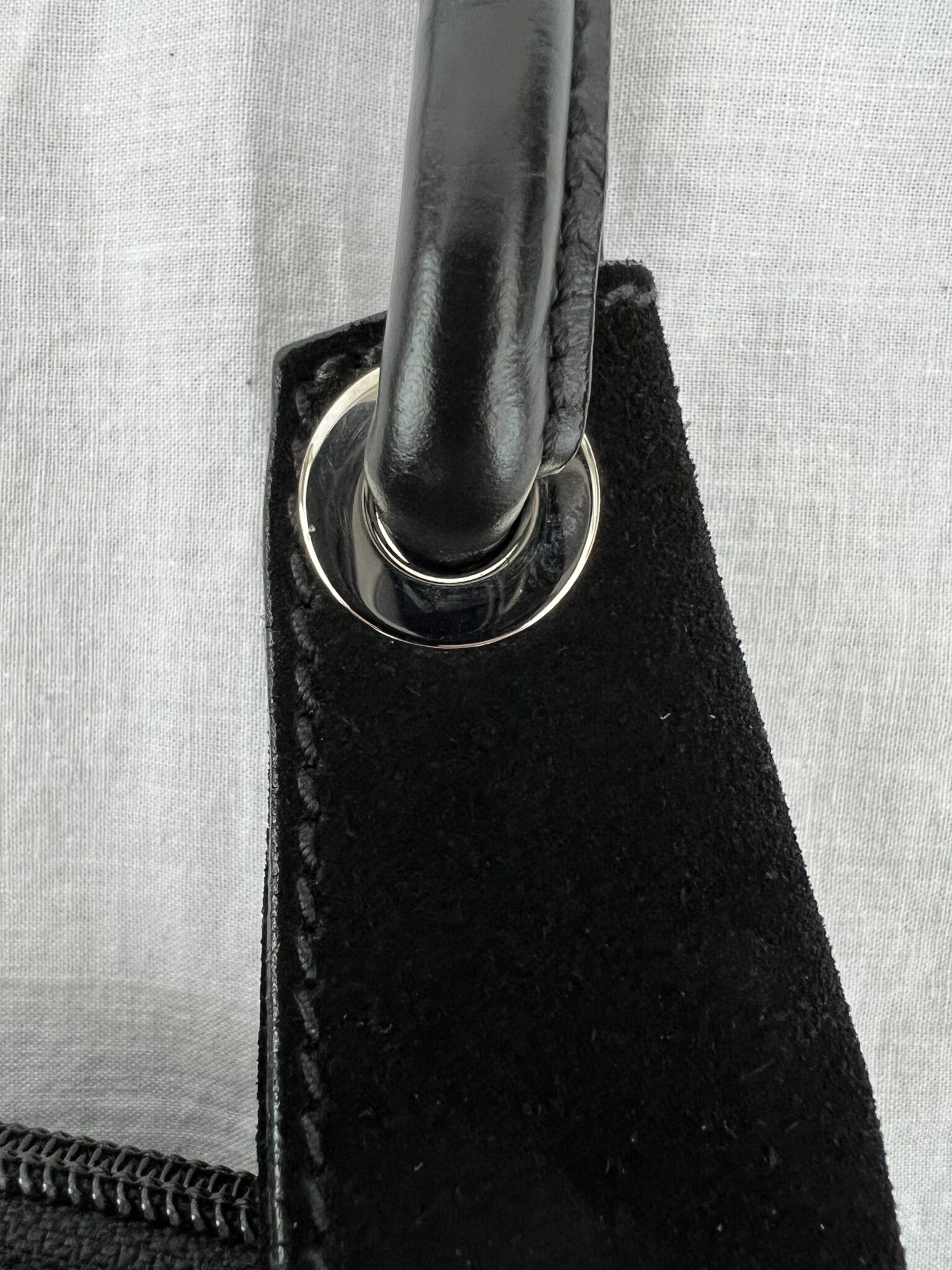 Handvatten: Uitstekende staat • Hoeken: Lichte slijtage in de vorm van subtiele vervaging van het suède op de vier onderste hoeken van de tas • Metalen delen: Perfecte staat • Interieur: Zo goed als nieuw.