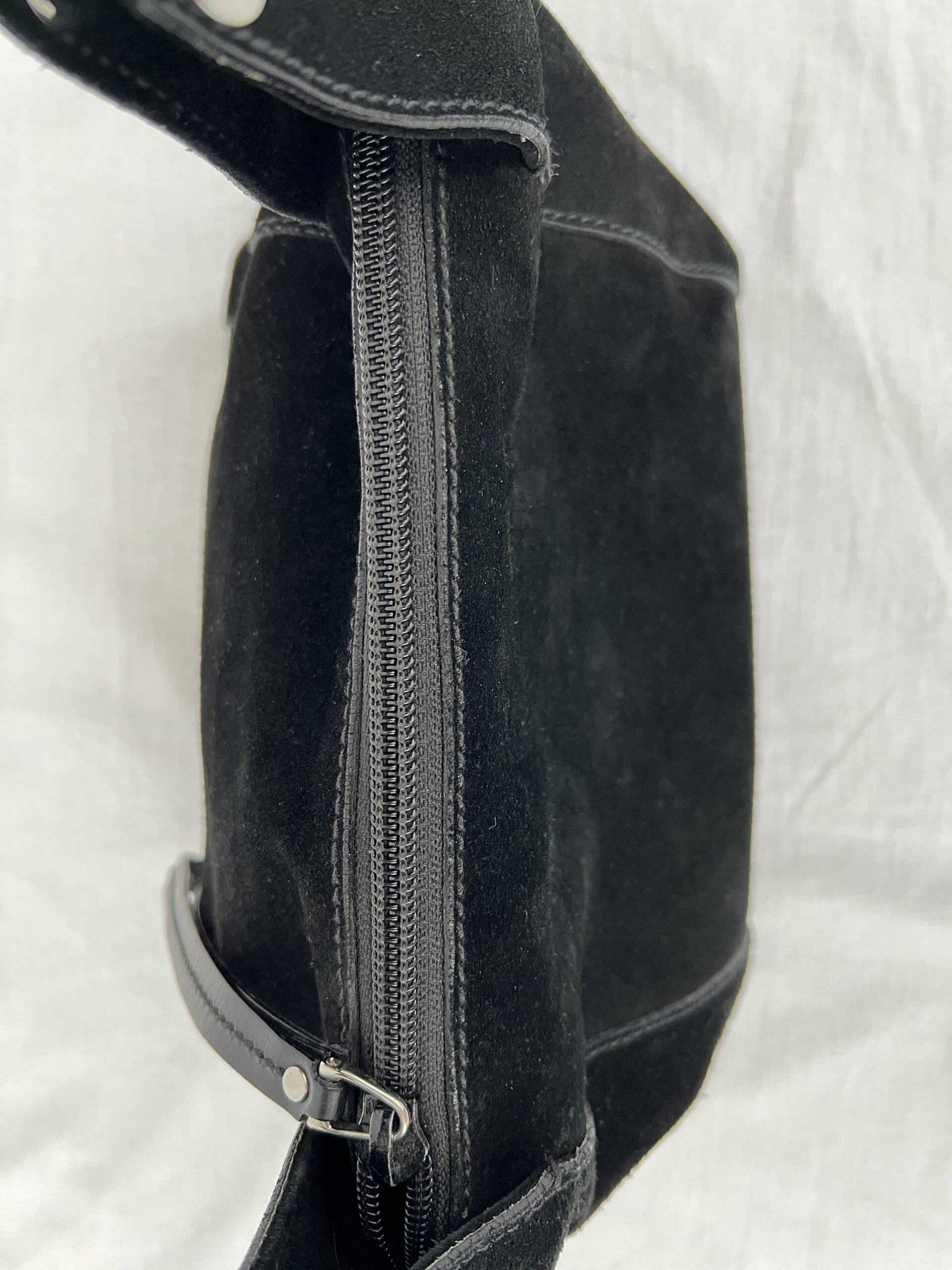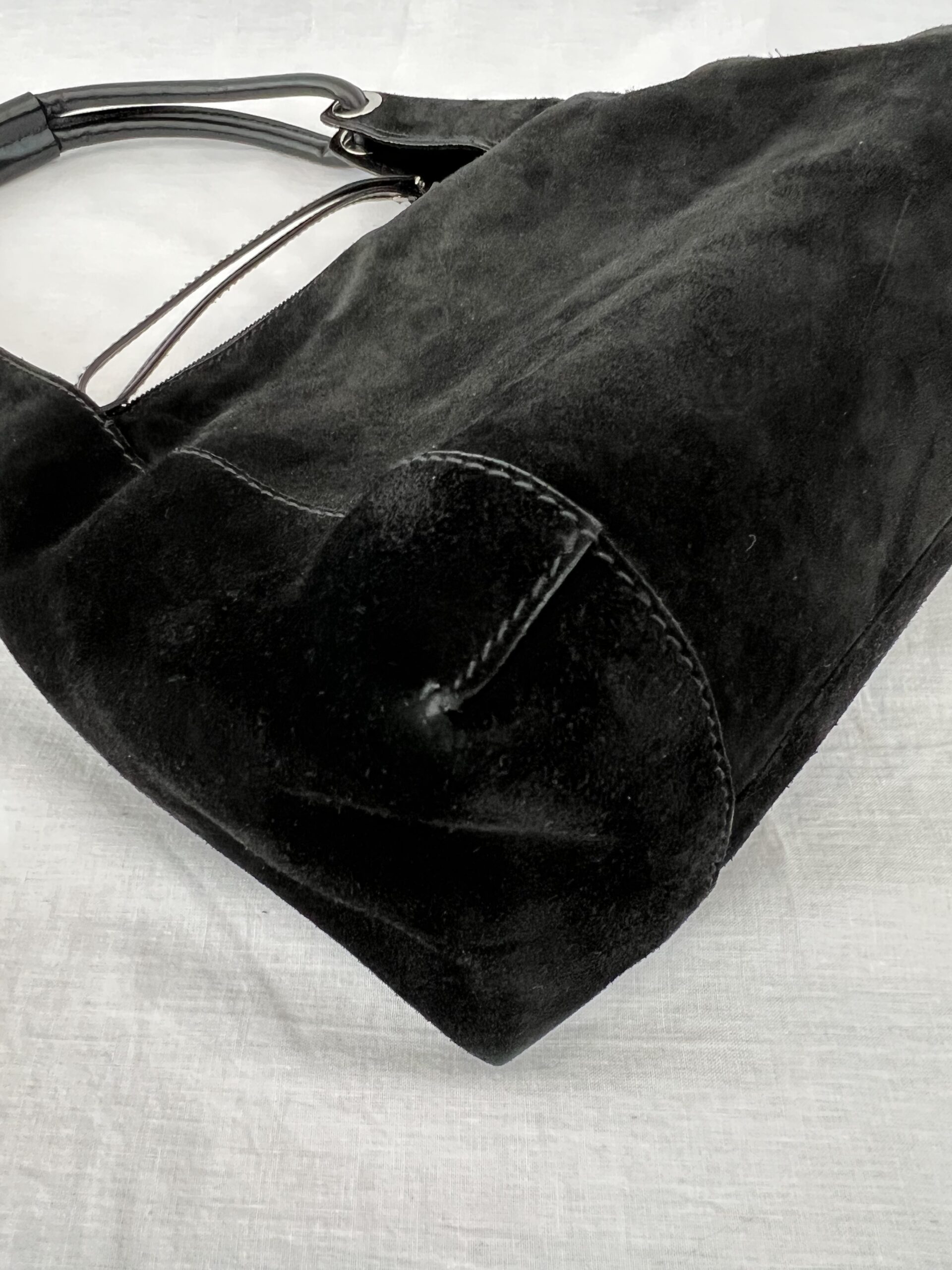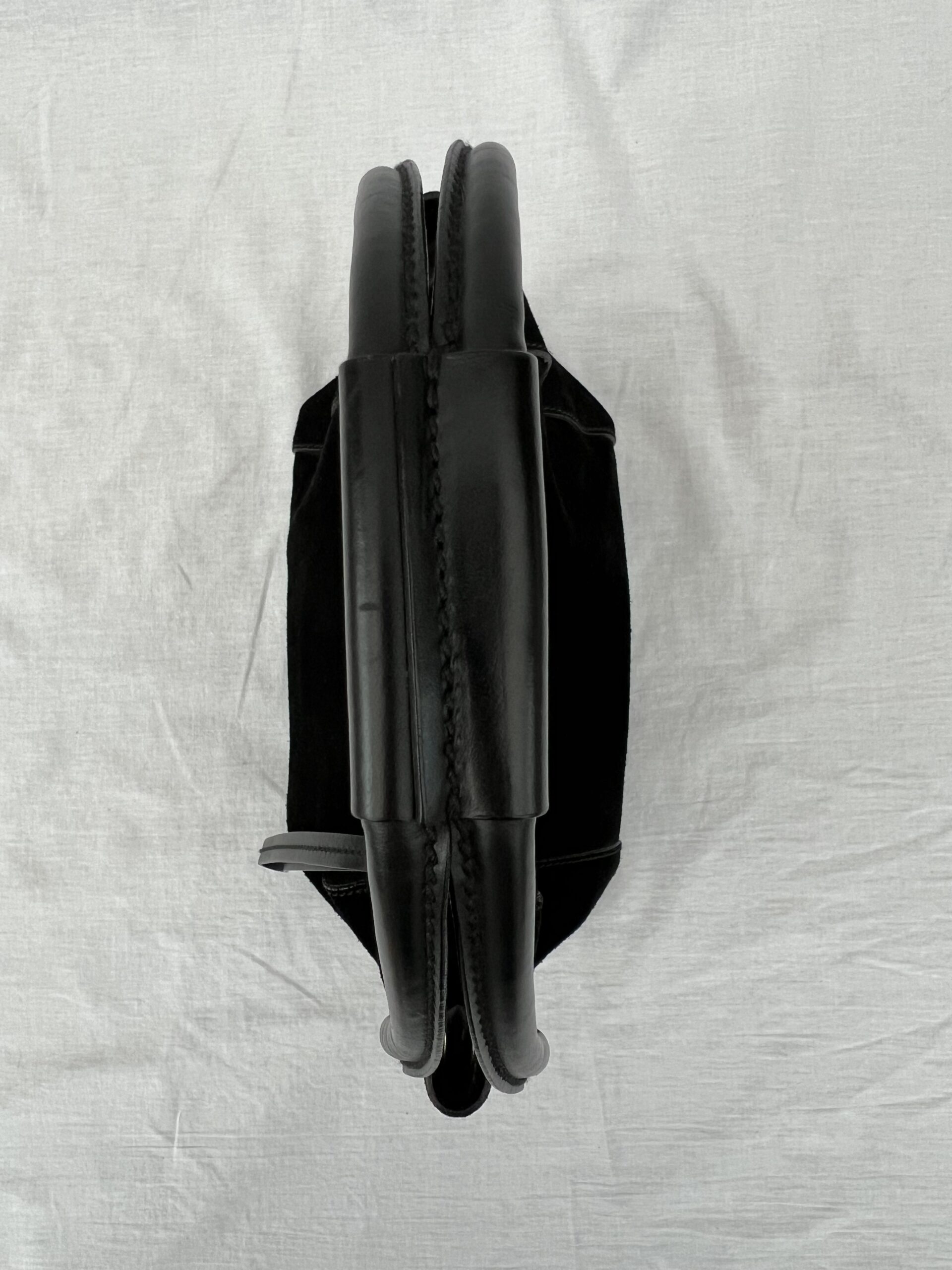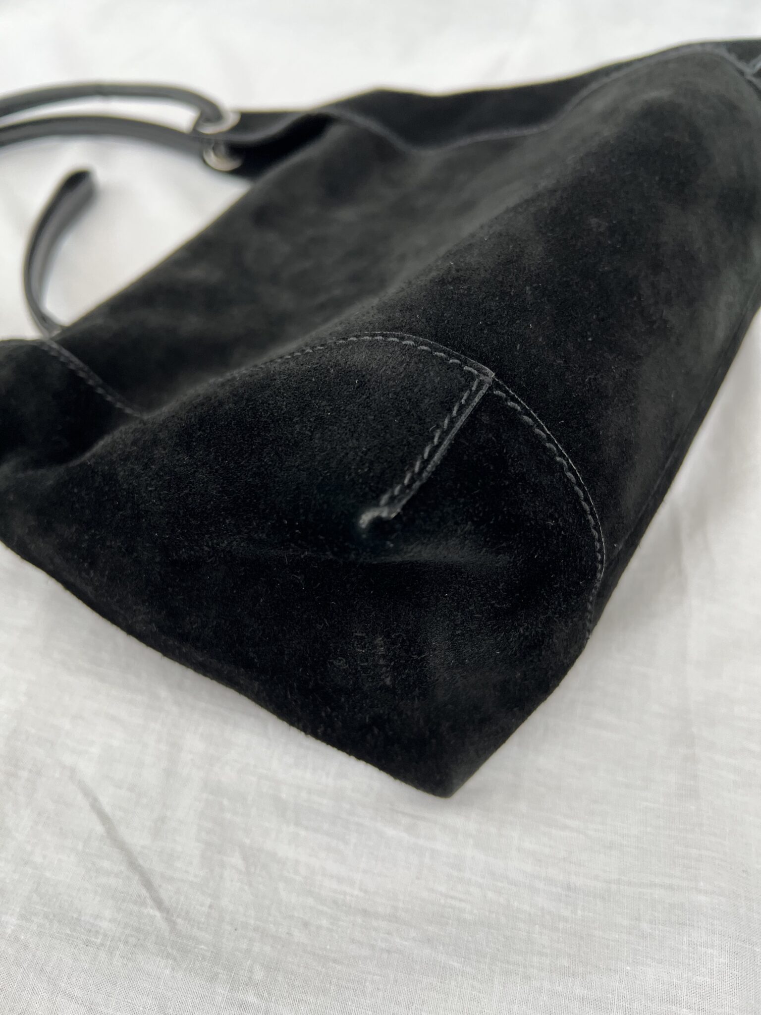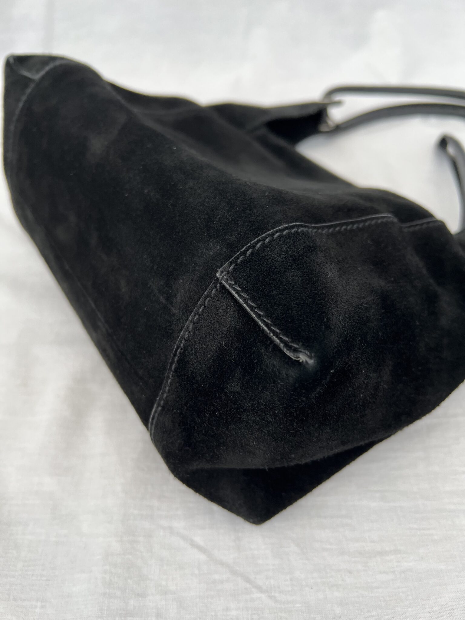 Handvatten: Uitstekende staat • Hoeken: Lichte slijtage in de vorm van subtiele vervaging van het suède op de vier onderste hoeken van de tas • Metalen delen: Perfecte staat • Interieur: Zo goed als nieuw.