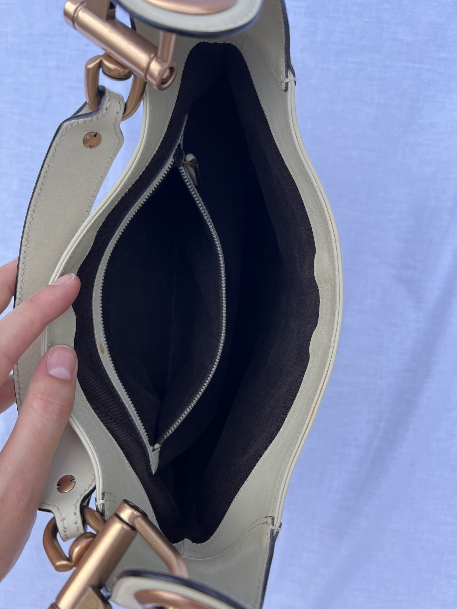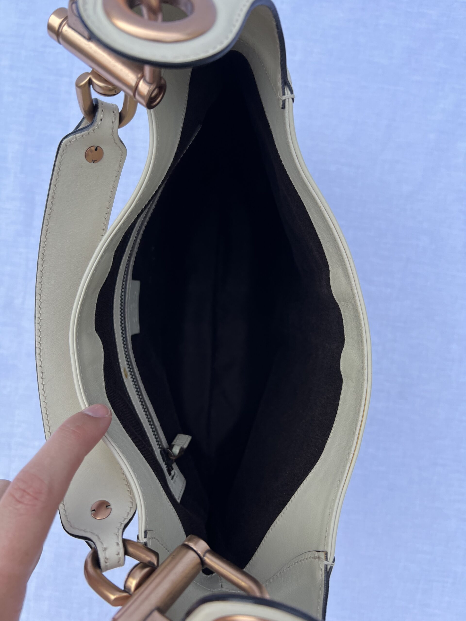 Vintage Gucci Jackie Medium tas in wit leer. Het ruime ontwerp biedt een groot hoofdvak met een kleiner ritsvakje en is voorzien van de klassieke piston lock-sluiting en roségouden hardware. De tas verkeert in uitstekende staat (8.5/10). Inclusief originele Gucci stofzak. Bekijk onderstaande productvideo en beschrijving voor een compleet beeld van de tas.