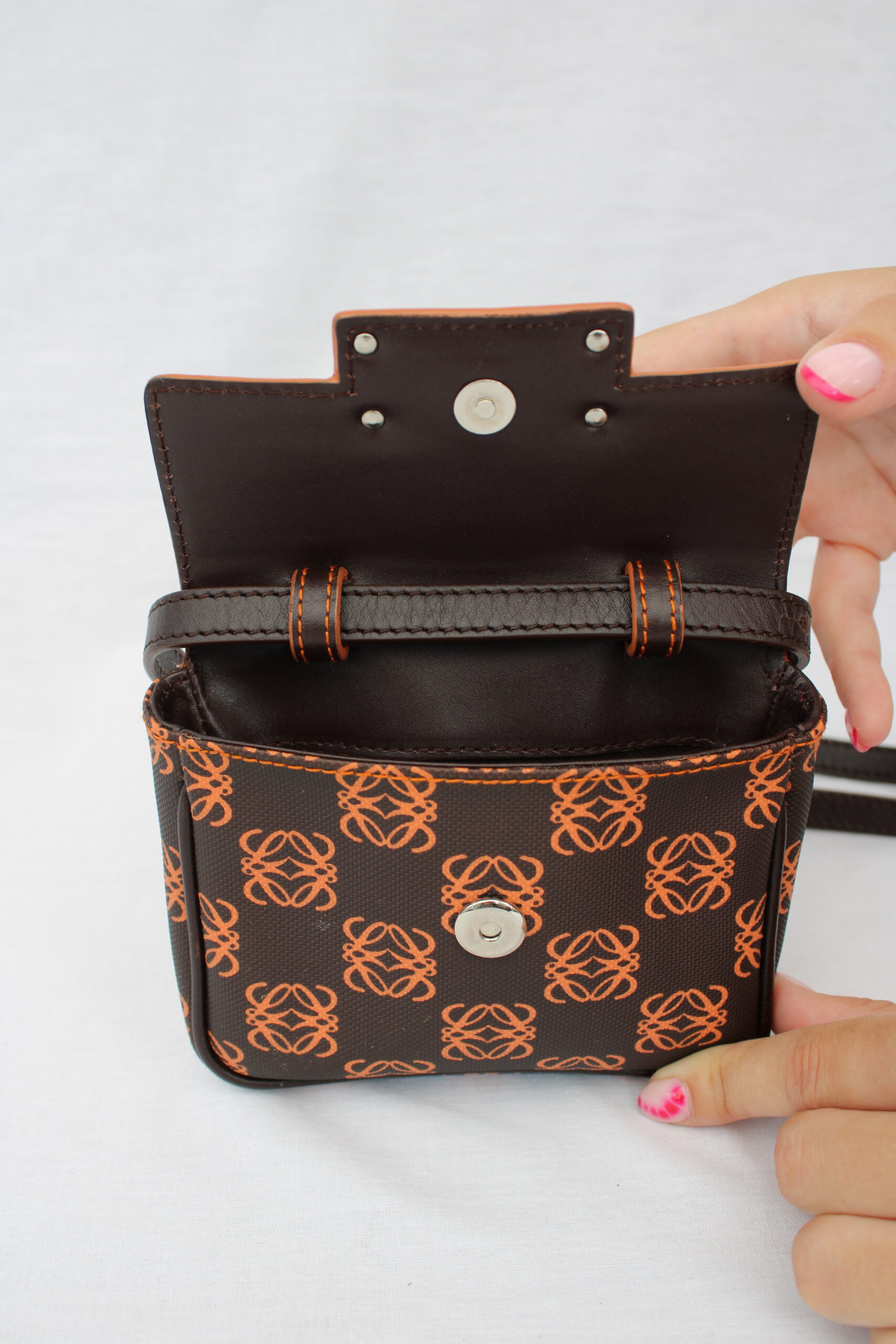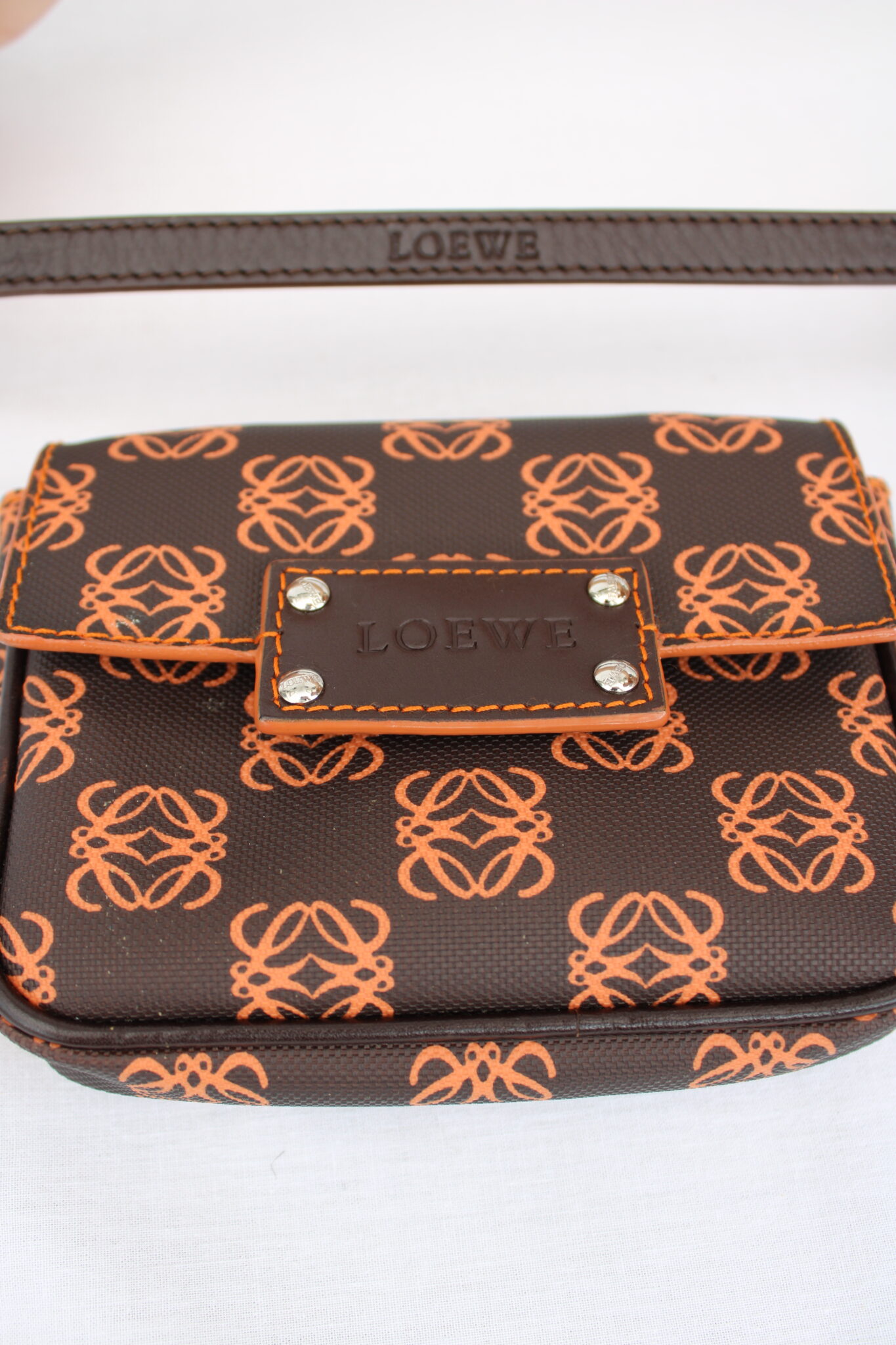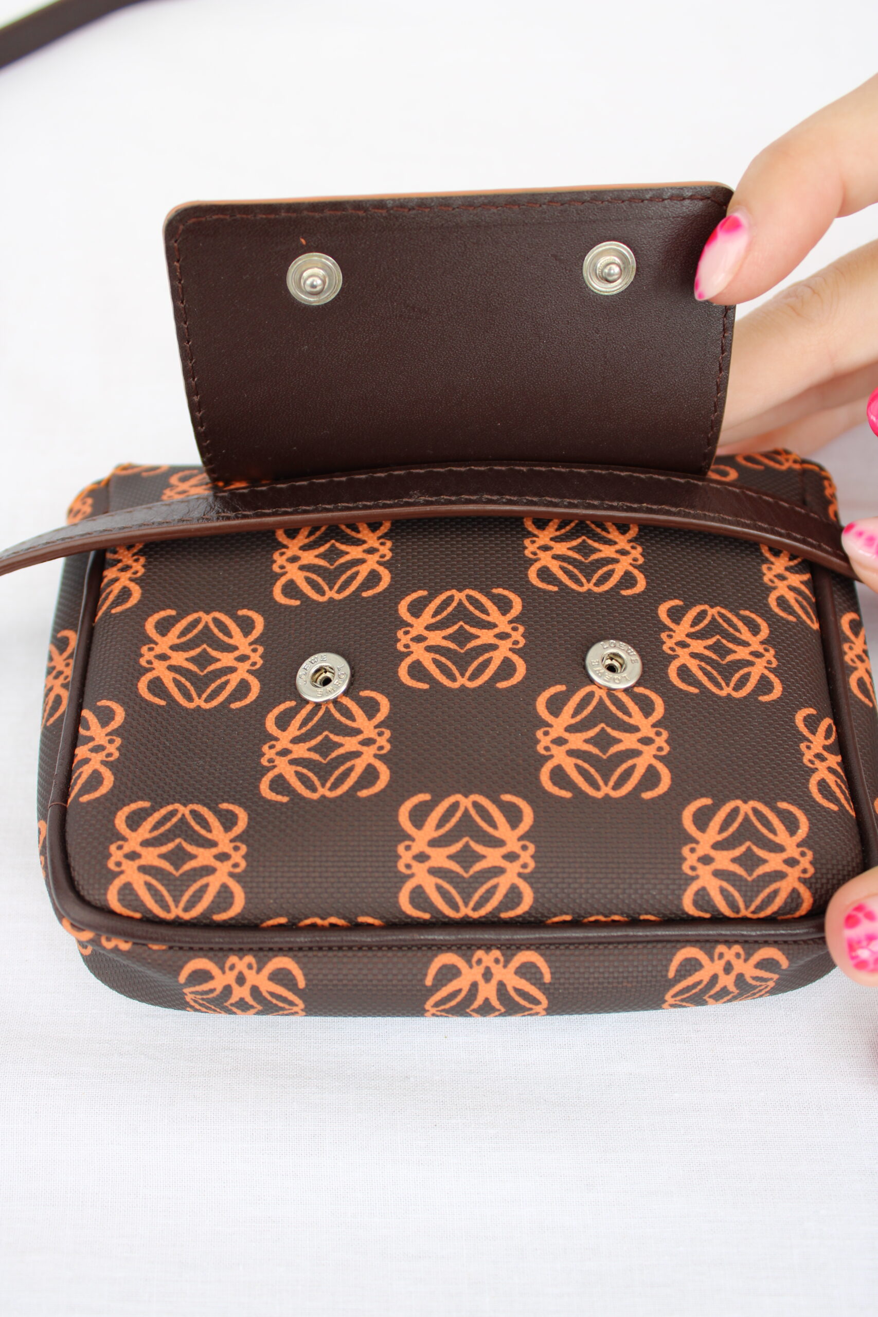 Draagband: Uitstekende staat • Hoeken: Uitstekende staat • Metalen delen: Uitstekende staat • Exterieur: Uitstekende staat, met minimale krasjes op de leren sluitflap aan de achterzijde • Interieur: Uitstekende staat.